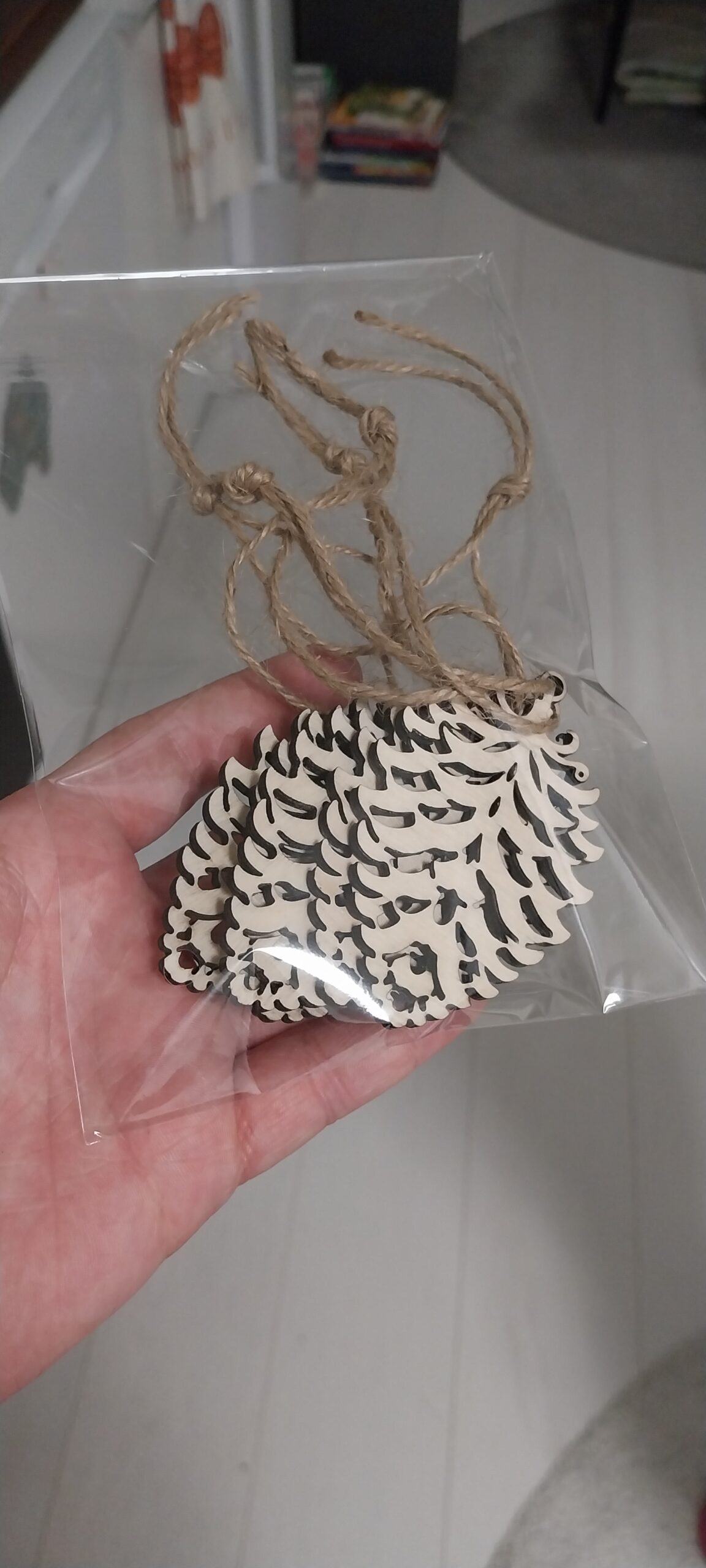 Tuotepakkaus käpykoristeet