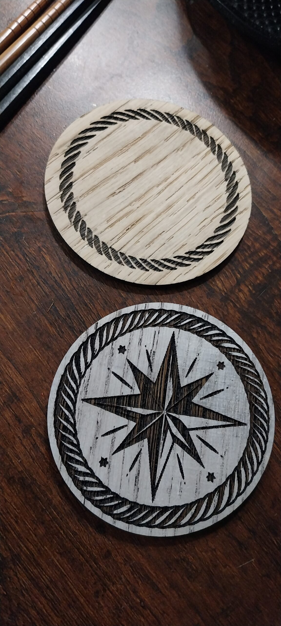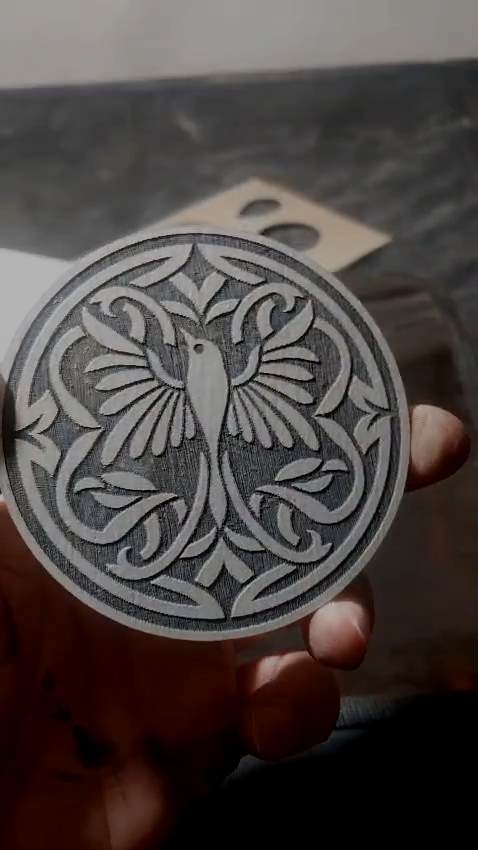 Laserkaiverrettuja ja/tai -leikattuja aihioita. contact@peukalo.fi
