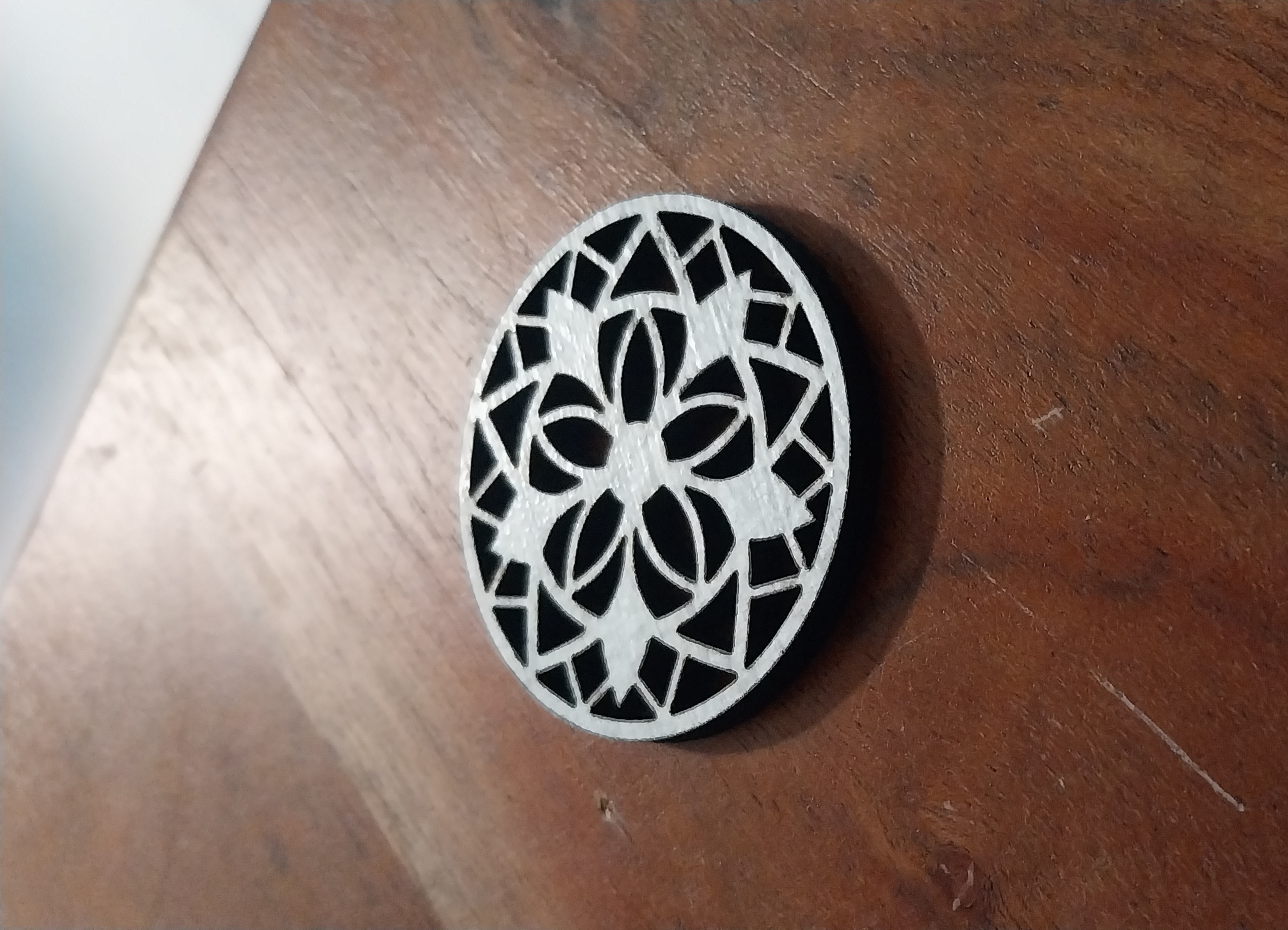 Symmetrinen kuviointi maalatulle MDF-levylle